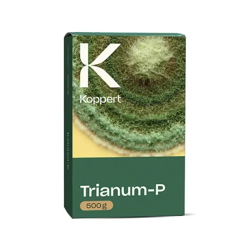 Produsul este din gama Koppert si este lipsit de toxicitate, protejeaza culturile de cele mai pagubitoare boli: Pythium (Caderea plantutelor), Fusarium (Fuzarioza/Ofilirea vasculara), Rhizoctonia (Raia neagra); Sclerotinia (Putregaiul alb). Fata de fungicidele conventionale, ce au si un efect rezidual si retardant, Trianum permite culturii sa se dezvolte sanatos, fara pierderi datorate aparitiet plantelor slab-dezvoltate si ajuta la dezvoltarea armonioasa a plantelor.