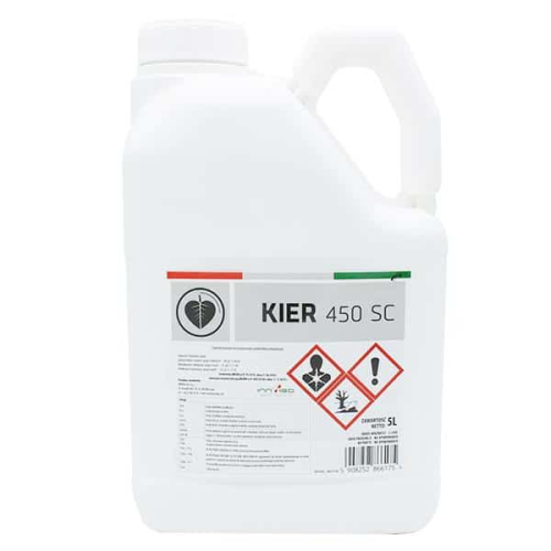 KIER 450 SC, este un fungicid, conditionat sub formă de suspensie concentrată (SC), de culoare albă, omogenă, cu efect sistemic, pentru utilizare preventivă și curativă împotriva bolilor fungice.